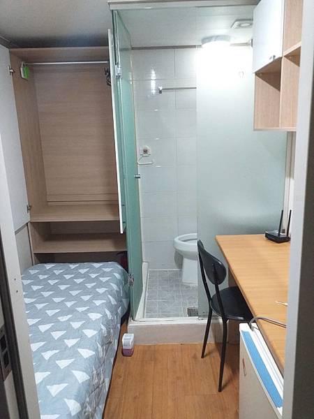 *考試院的空間非常小大概2~3坪左右,一般分為mini room(浴廁共用) 和one room(個人浴廁)shower room (只含浴室,廁所共用),當然這些房型都會反映在價格上