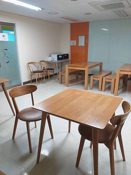 交誼廳裡面有兩台微波爐,微波完可以在裡面吃東西。