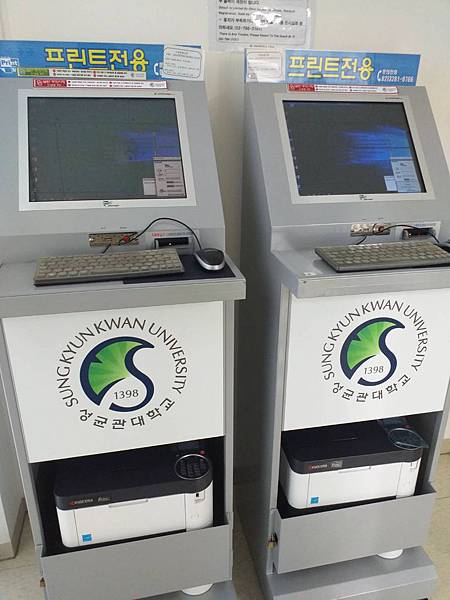 外面有兩台影印機可使用,自行登錄一組帳號密碼,一次須儲存1000元,之後在學校裡面只要是長這樣的機器也都可以共同使用,黑白一張只要40超級便宜。(外面一張100)