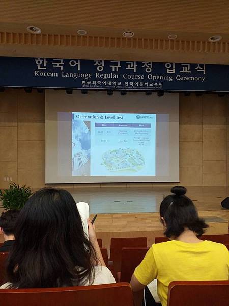因為是所有語學堂新生一起聽,除了韓文說明旁邊也有中文、日文、英文翻譯的老師。主要介紹一些語學堂日程與規定,之後針對登錄證、手機、開戶、保險等.....進行說明,對外大語言交換有興趣的話說明冊也有~